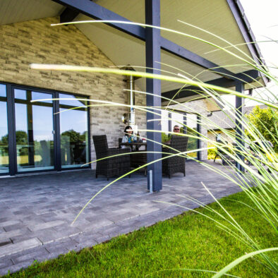 Die 20 m² große, überdachte Terrasse, ausgestattet mit einem Holzkohlegrill und stilvollen Terrassenmöbeln, lädt dazu ein, sowohl die Morgen- als auch die Abendsonne zu genießen.