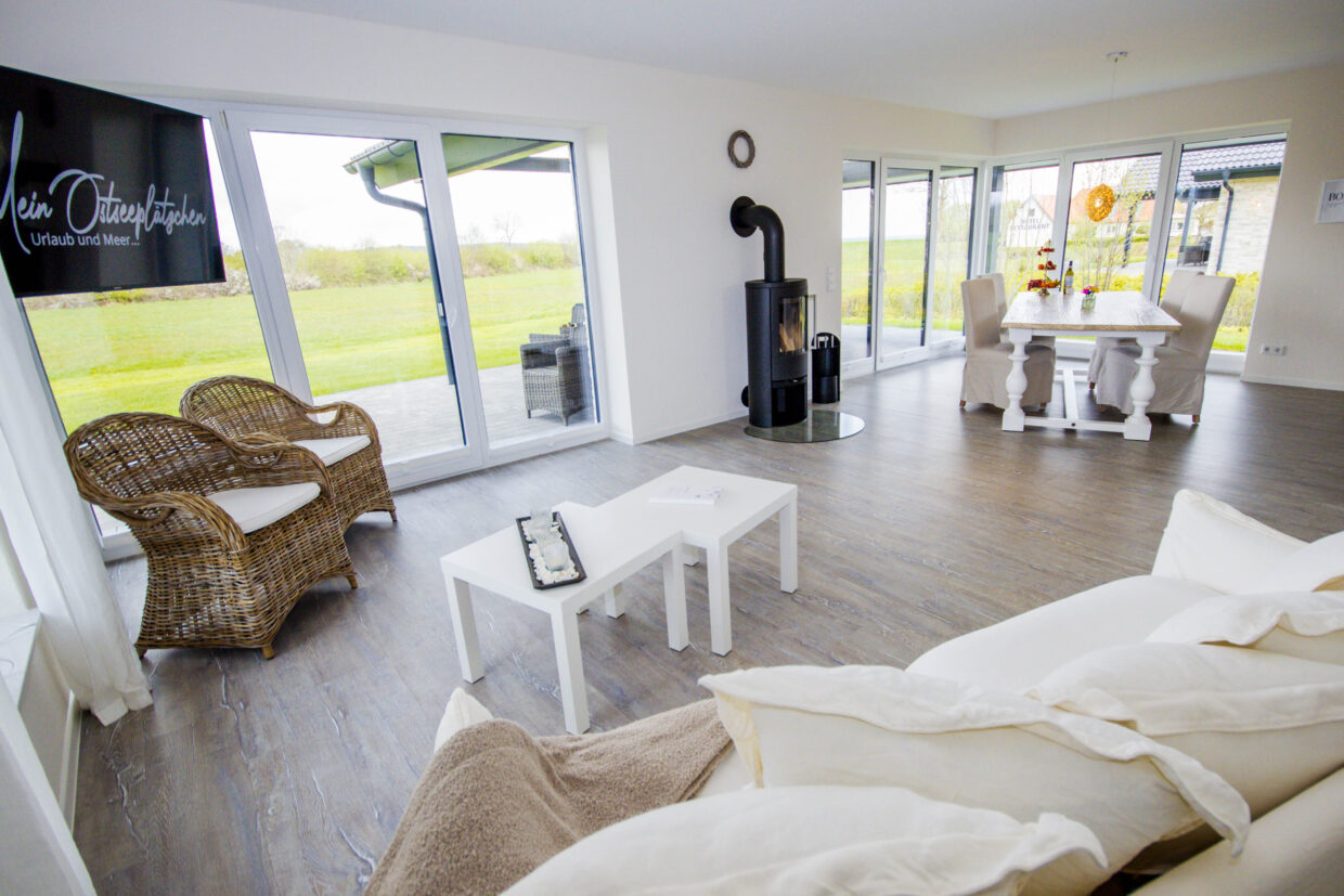 Erleben Sie unvergessliche Urlaubstage in unserem lichtdurchfluteten Ferienhaus, das Platz für bis zu 4 Personen auf 80 m² bietet. Beim Betreten des Hauses werden Sie sofort von dem atemberaubenden Blick auf die Ostsee durch die bodentiefen Fenster gefesselt, die sich durch den gesamten Wohn- und Essbereich ziehen.