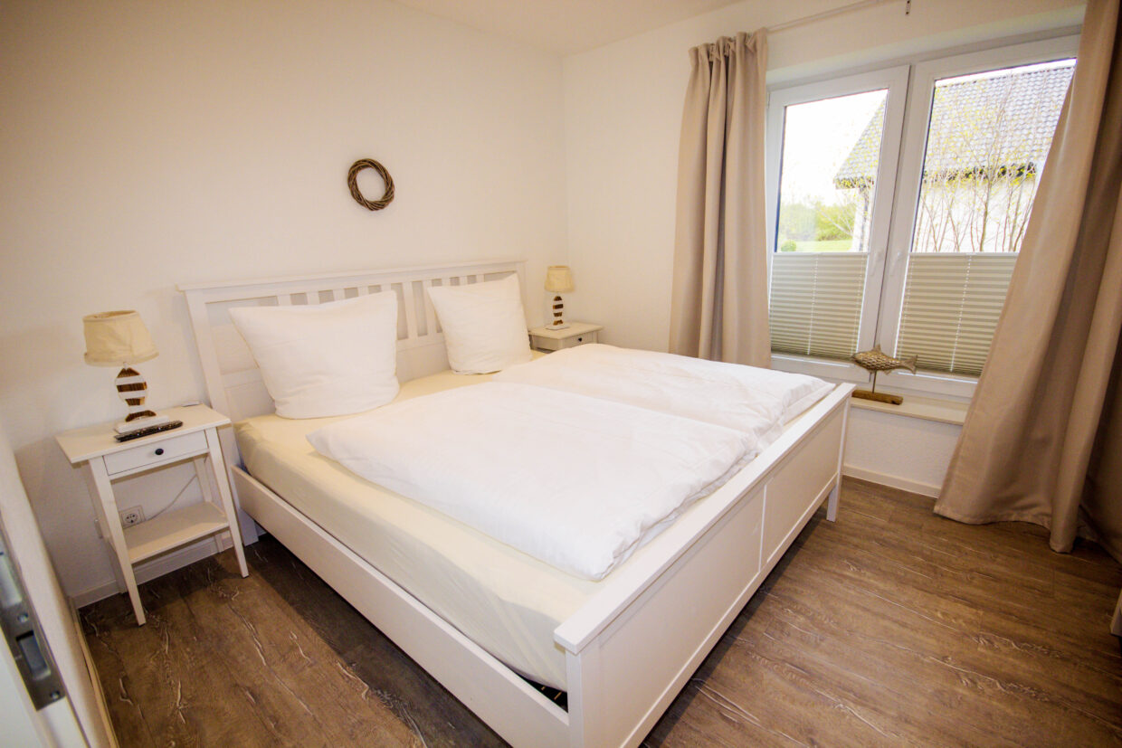 Zwei komfortable Schlafzimmer, jeweils mit einem Doppelbett (180 x 200 cm), offenem Kleiderschrank und Flat-TV, garantieren erholsame Nächte. Das Hauptbad überzeugt mit einer Raindance-Dusche, Handtuchtrockner und Fön, während das zusätzliche Gästebad mit WC und Waschbecken ausgestattet ist.
